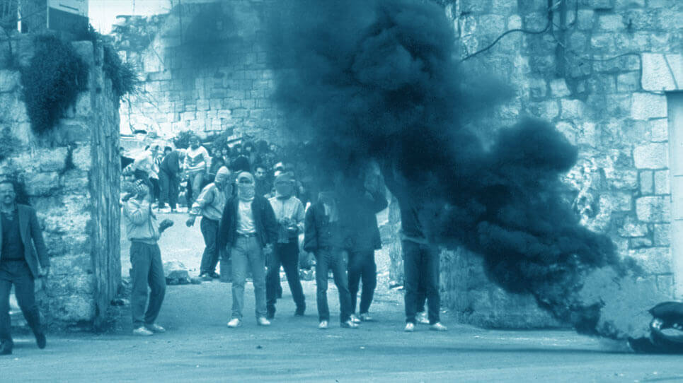 Die fortwährende Besiedlung der Palästinensergebiete durch jüdische Siedlungen, die mit einer Verdrängung der einheimischen Bevölkerung einherging, führte 1987 zur Ersten Intifada (arabisch für Abschütteln). Dies war ein spontaner Volksaufstand, der nicht durch die im Exil befindliche PLO orchestriert wurde. Er dauerte bis zur Unterzeichnung der Oslo-Verträge 1993. Die Mittel des Aufstands reichten von zivilem Ungehorsam (Streiks, Graffiti) über Steinewerfen (daher die Bezeichnung „Intifada der Steine“), vor allem durch Kinder und Jugendliche, bis zum Einsatz von Molotowcocktails. Die israelische Armee versuchte, die Intifada mit Gewalt zu beenden, verletzte dabei Zehntausende Kinder und Jugendliche und tötete über 1.000 Palästinenser*innen. Die israelische Seite beklagte den Tod von ca. 100 Zivilisten sowie ca. 60 Armeeangehörigen.