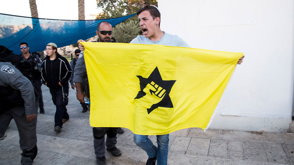 Mitglieder der „Lehava“-Organisation auf einem Protest gegen eine jüdisch-arabische Hochzeit in Rishon Letzion, Israel. 2014