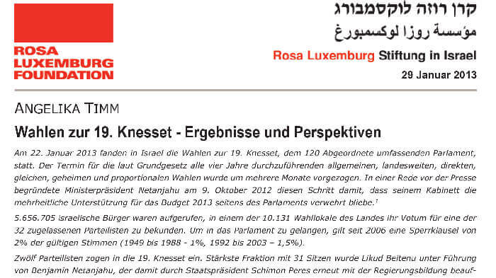 Wahlen zur 19. Knesset – Ergebnisse und Perspektiven