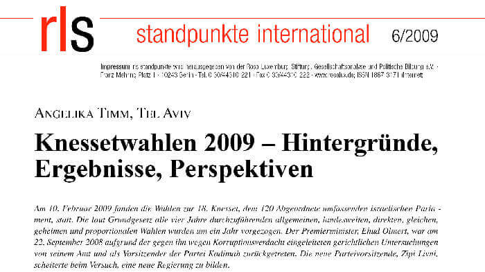 Knessetwahlen 2009 – Hintergründe, Ergebnisse, Perspektiven